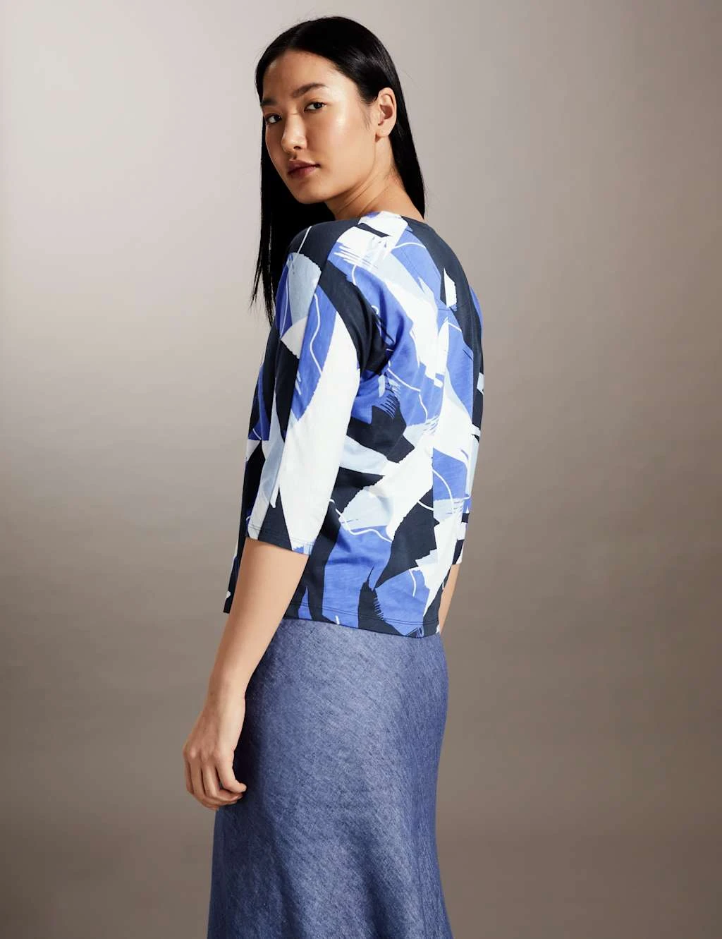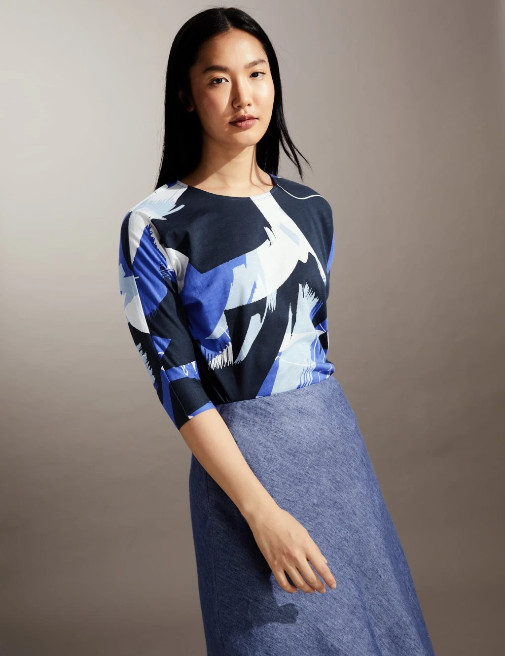 Featuring a paintbrush print designed exclusively by Jaeger, this top brings an artistic edge to any look. It’s made to a regular fit from stretchy jersey fabric and features a neat crew neckline. The three-quarter batwing sleeves drape elegantly off the shoulders. Tuck yours into tailored trousers or skirts for an everyday ensemble with added flair.