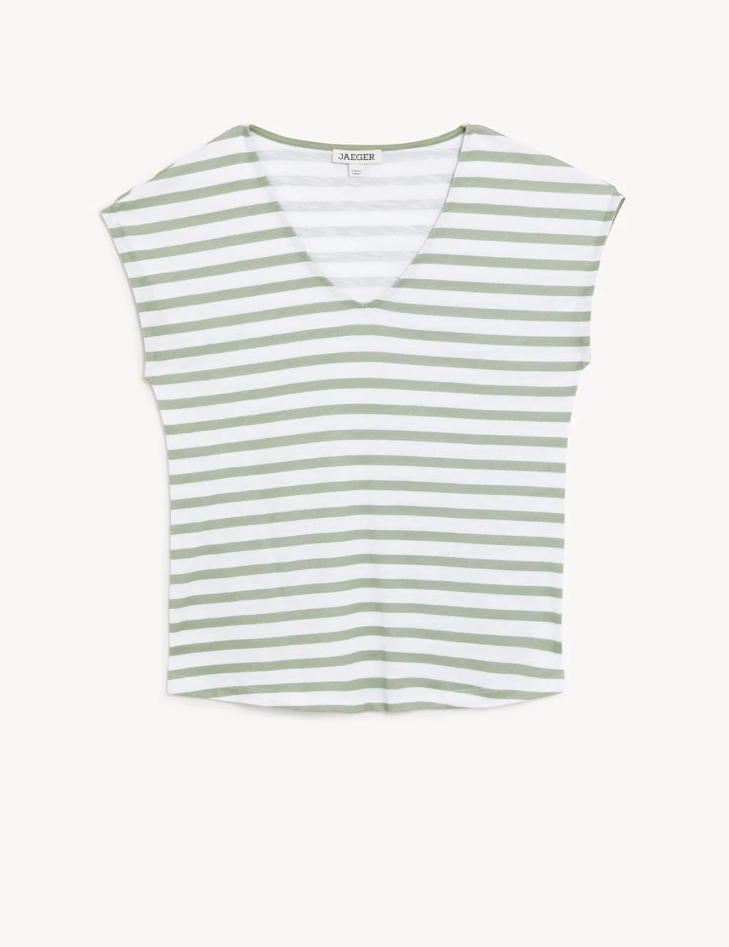 This striped vest top by Jaeger is an easy-breezy summer staple. It’s cut to a regular fit from stretchy jersey fabric and features a flattering v-neckline. The sleeveless shape with wide armholes creates a light, airy feel. Match yours with linen trousers for laid-back sunny day styling.