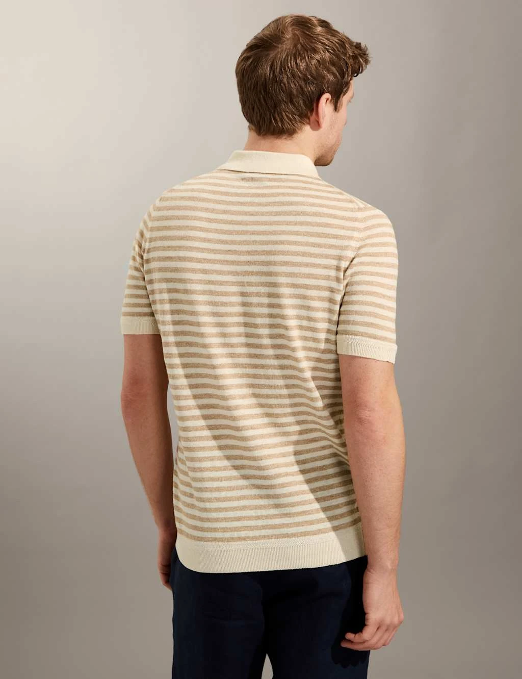 Jaeger Linen Rich Striped Polo Shirt