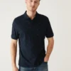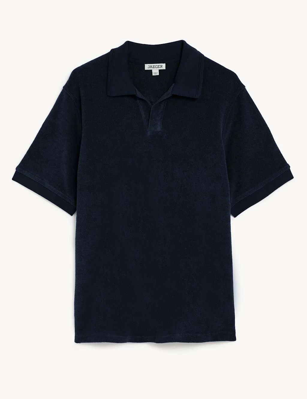 This classic polo shirt from Jaeger is crafted from slightly textured cotton, which is naturally breathable and soft to wear. It’s cut to a regular fit with short sleeves that finish in a contrasting trim. The open collar and buttonless placket bring a contemporary feel to the traditional polo design.