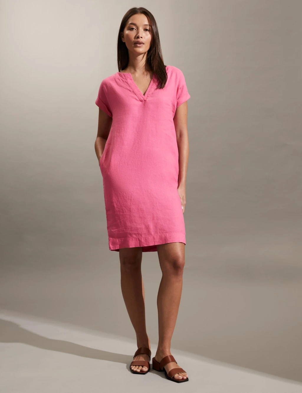 Jaeger Pure Linen Notch Neck Mini Shift Dress
