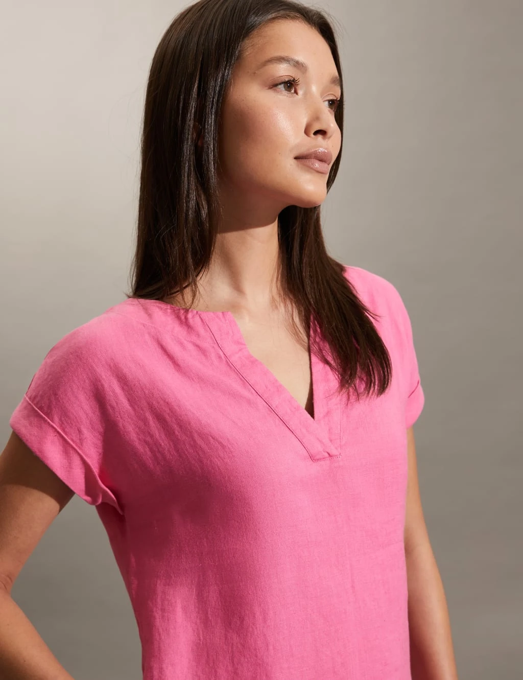 This Jaeger dress drapes the body in pure linen for a breathable feel on warm days. It’s cut to a relaxed fit, with an effortless shift shape that finishes just above the knees. The notch neckline and short, grown-on sleeves add to its airy quality. Continue the laid-back styling by teaming yours with flat slip-on sandals.