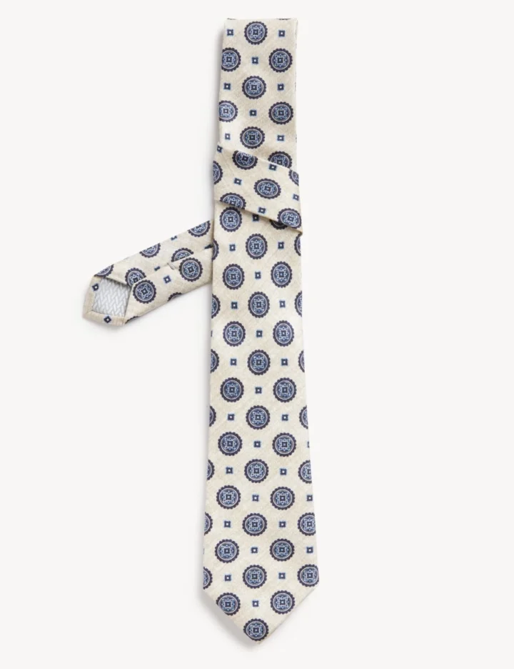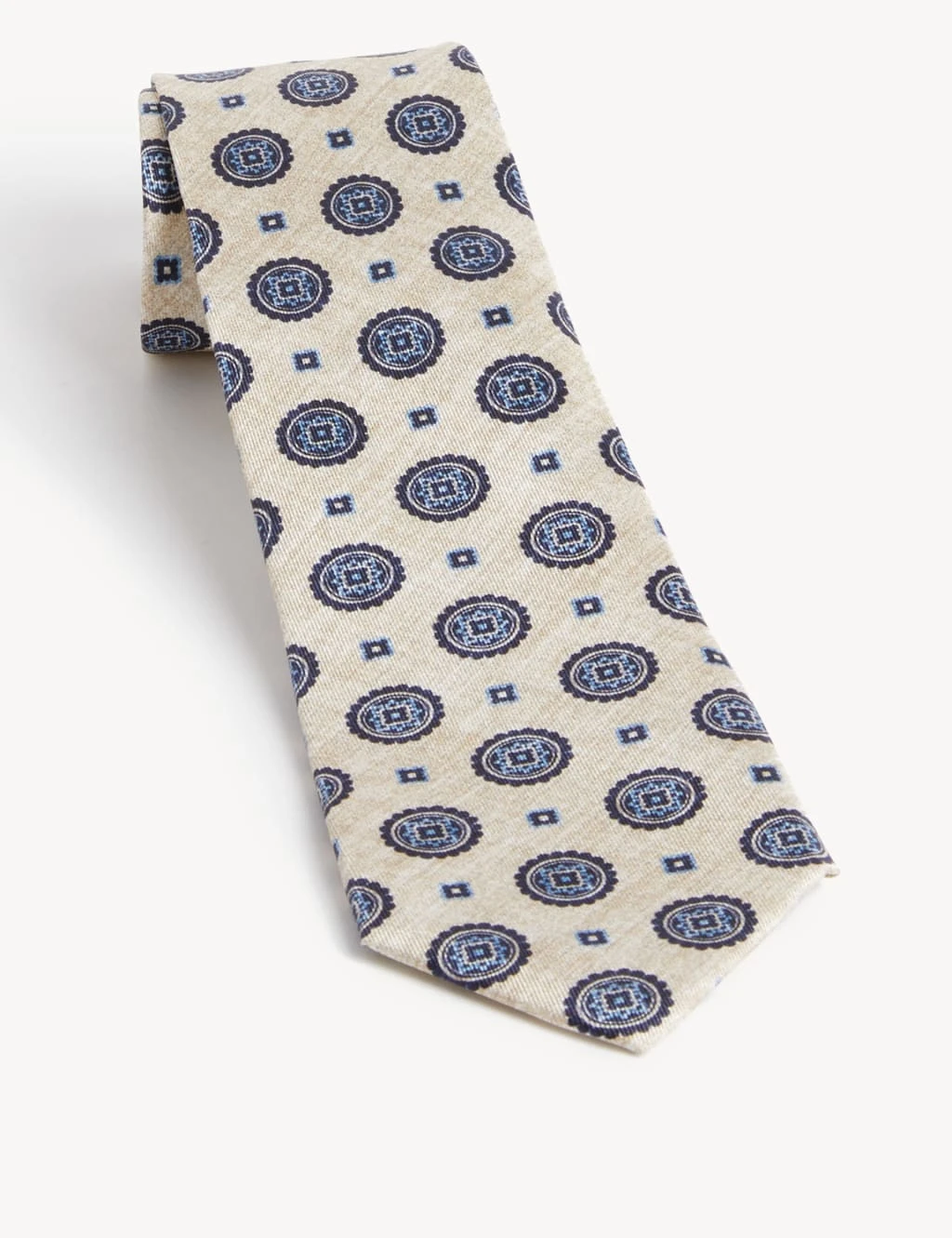 With its eye-catching mosaic design, this Italian pure silk tie by Jaeger is the perfect decorative focal point. The luxurious silk fibres create a natural lustre and elegant drape. It comes in a contemporary slim shape, with a width of 7cm. Use yours to complement a navy suit, wearing a crisp white shirt for statement contrast.