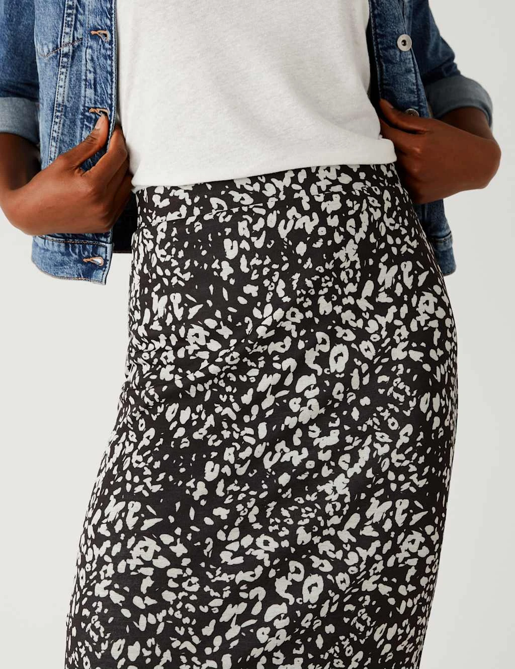 Add eye-catching print to stylish ensembles with this jersey mesh pencil skirt. It falls to a flattering midi length, with stretch in the fabric for freedom of movement. An elasticated waist makes it comfortable to wear, while a full lining offers a smooth feel against the skin.