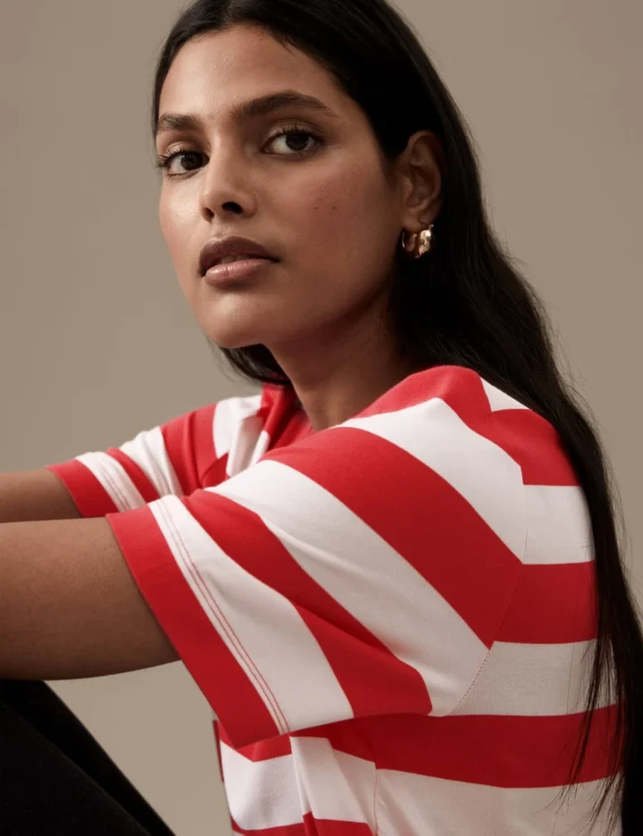 Add interest to your casual wardrobe with this jersey t-shirt from the Autograph collection. It’s designed in a roomy relaxed fit with added stretch for comfort. Contrasting stripes add a fun twist to this timeless crew neck style.