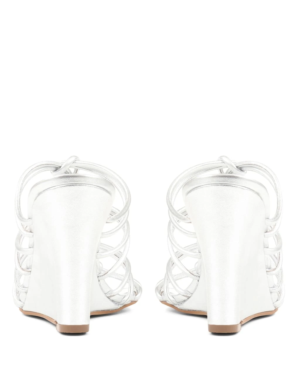 Bring a statement finish to summer ensembles with these metallic leather sandals from Jones Bootmaker. They have an effortless, slip-on design with mid-height wedge heels. Light cushioning underfoot provides extra comfort, while gladiator-inspired interwoven straps complete the look.