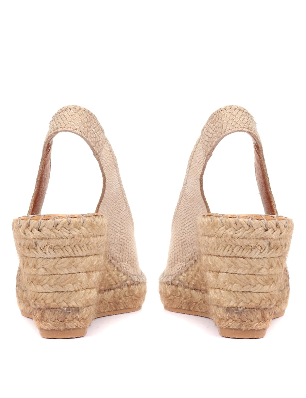 Sleek snakeskin-patterned leather and a summery raffia texture combine in these sandals by Jones Bootmaker. These espadrille wedges are made to a regular fit, with an elegant peep toe. Their elasticated slingback means you can easily slip them on.