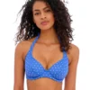 Add a splash of colour and print to your swimwear with this floral halterneck bikini top by Joules. Lightly padded cups and a plunging neckline gently shape and lift the bust for a flattering silhouette. Twist detailing at the centre front lends pretty texture to the piece. It fastens with self-tie straps at the back for adjustable comfort.