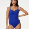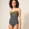 Bring extra flair to your poolside wear with this eye-catching floral swimsuit from Joules. It’s made in an adjustable halterneck style, with a bold plunge neckline. The lightly padded cups are non-wired for a smooth shape and a comfy feel, and have a twist detail in the centre to create textural interest. Ruching across the front waist ensures a flattering finish.