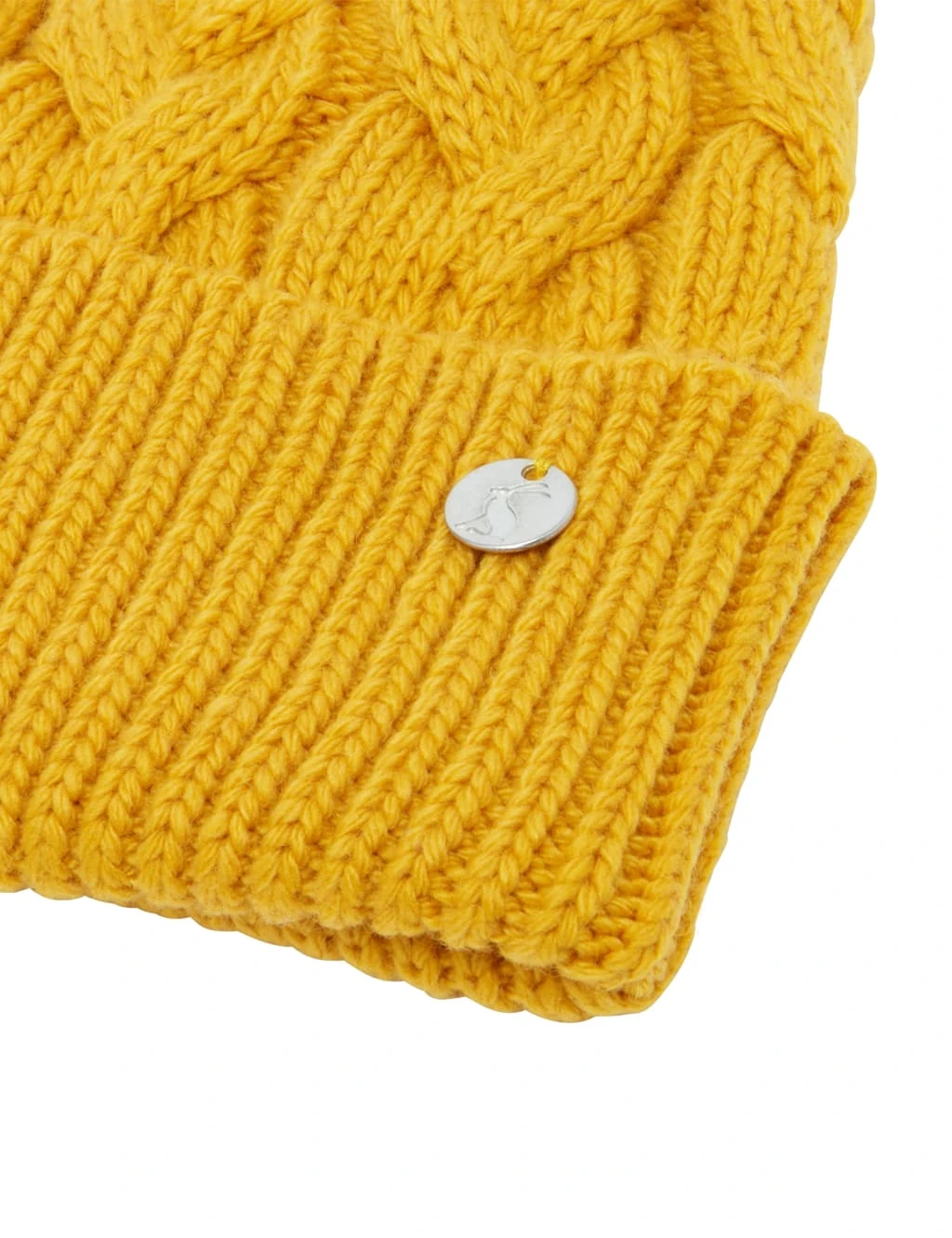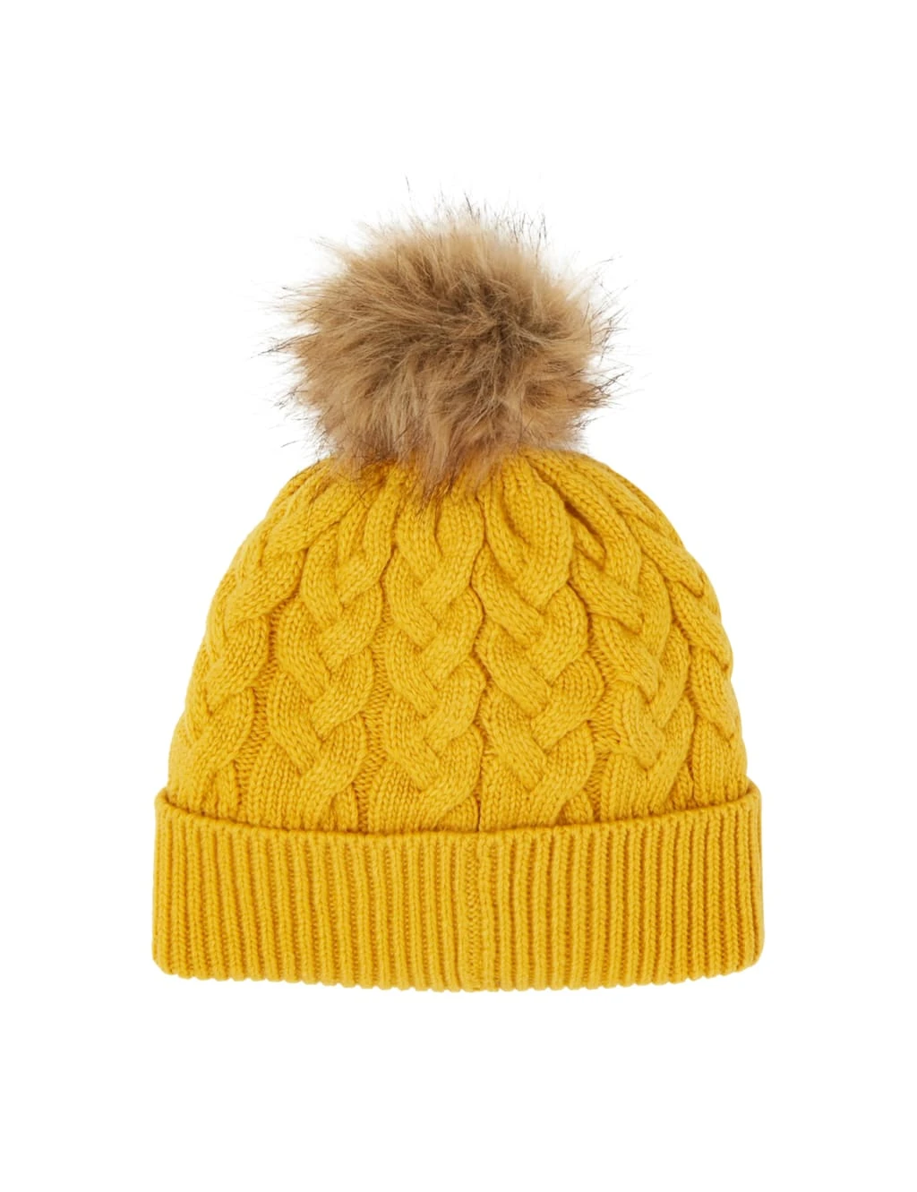 Cable knit stitching makes this Joules winter hat extra cosy. It comes in a classic beanie shape with a fluffy pom and a stretchy ribbed cuff that keeps in the warmth. The brand’s signature hare emblem trims the bottom for a premium finish.