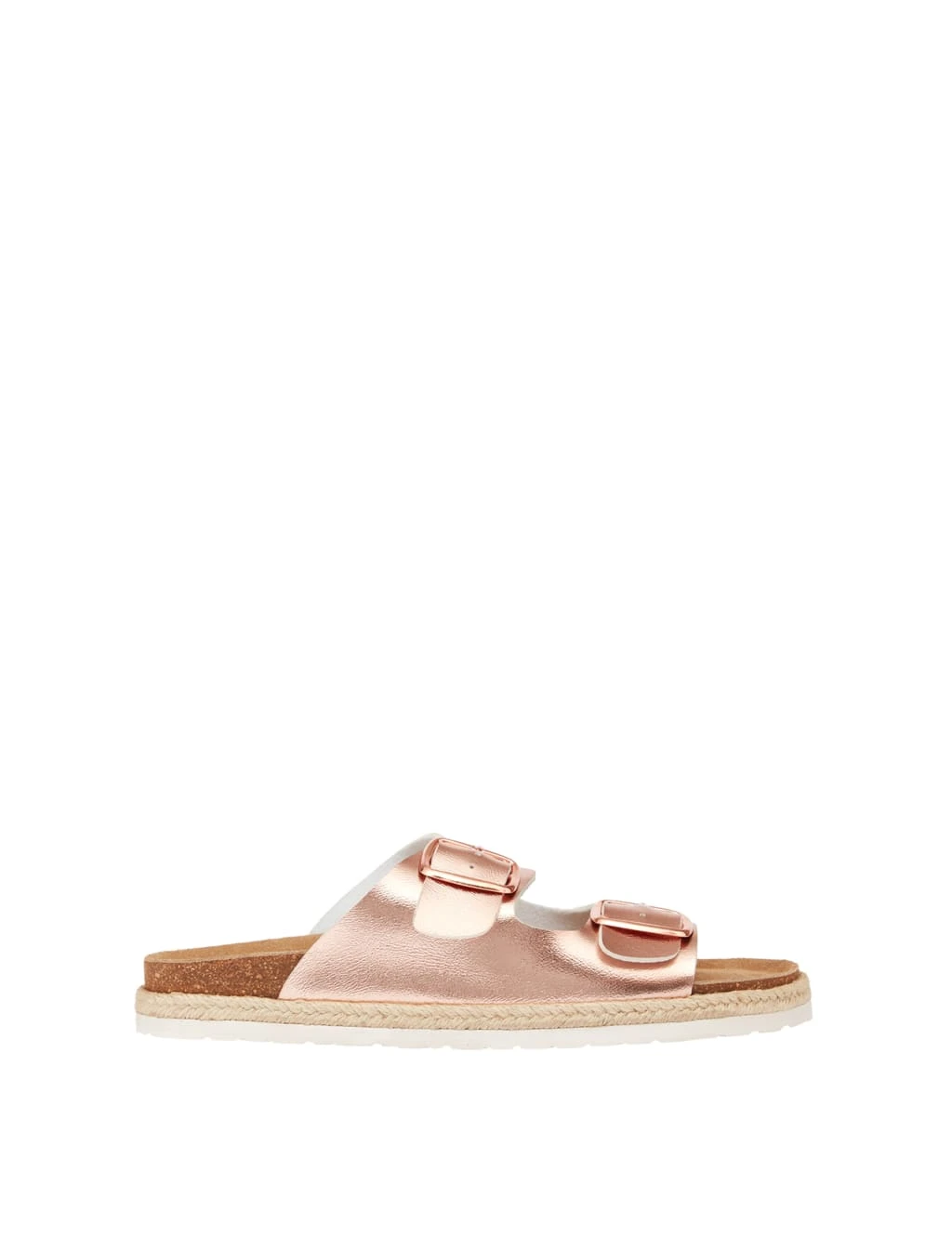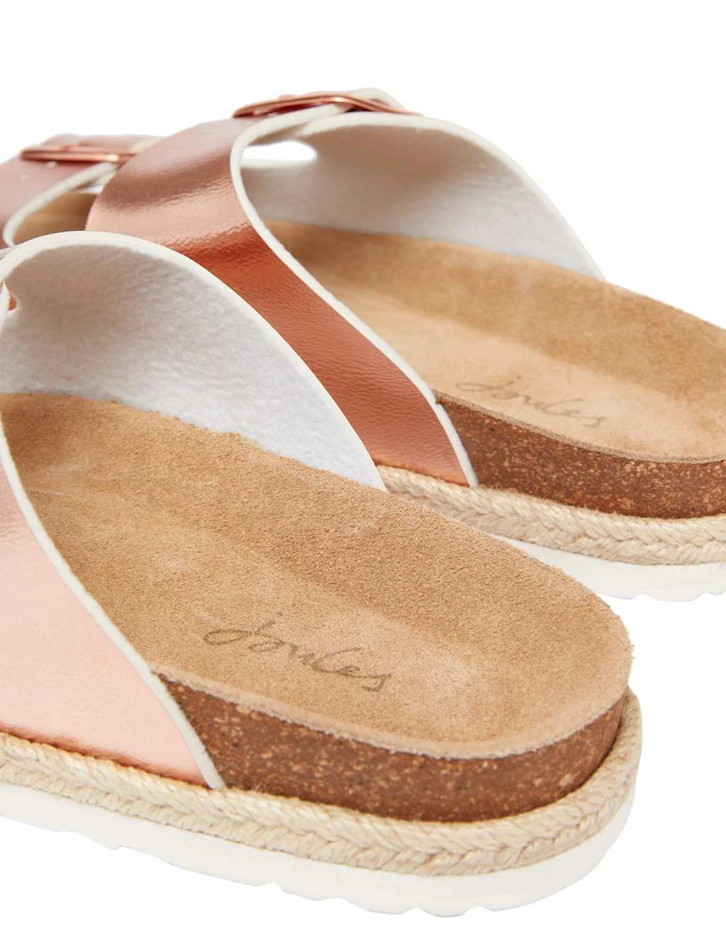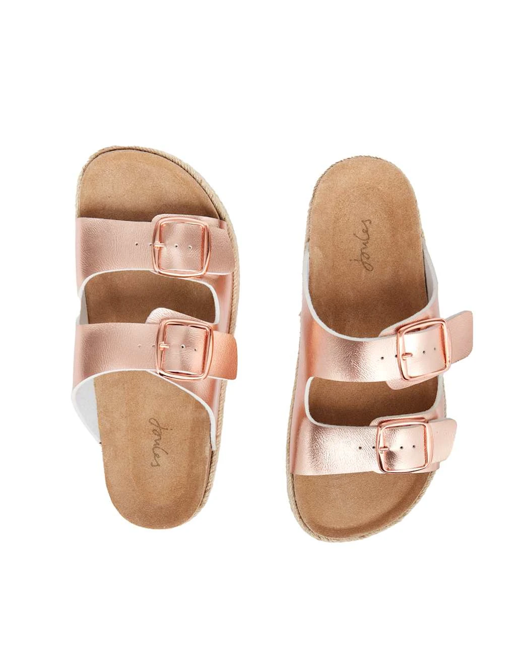 These mule sandals from Joules are crafted from shimmering metallic leather that gives them an eye-catching look. They’re made in an easy slip-on style, with a flat, moulded footbed for comfort. The buckles on the double straps are adjustable so you can find your perfect fit.