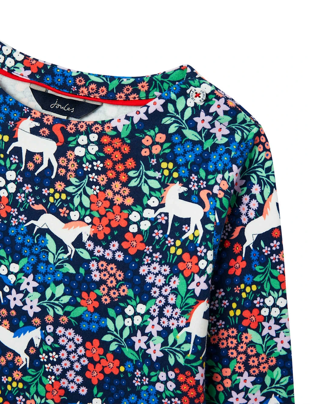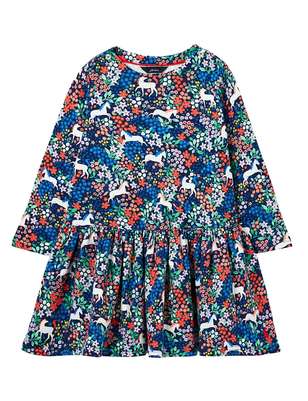 This pure cotton jersey dress from Joules is perfect for playdates or parties. It’s designed in a comfy regular fit with a classic round neck and a floaty tiered hem. Designed in house, the print combines colourful florals with galloping horses for a playful look.