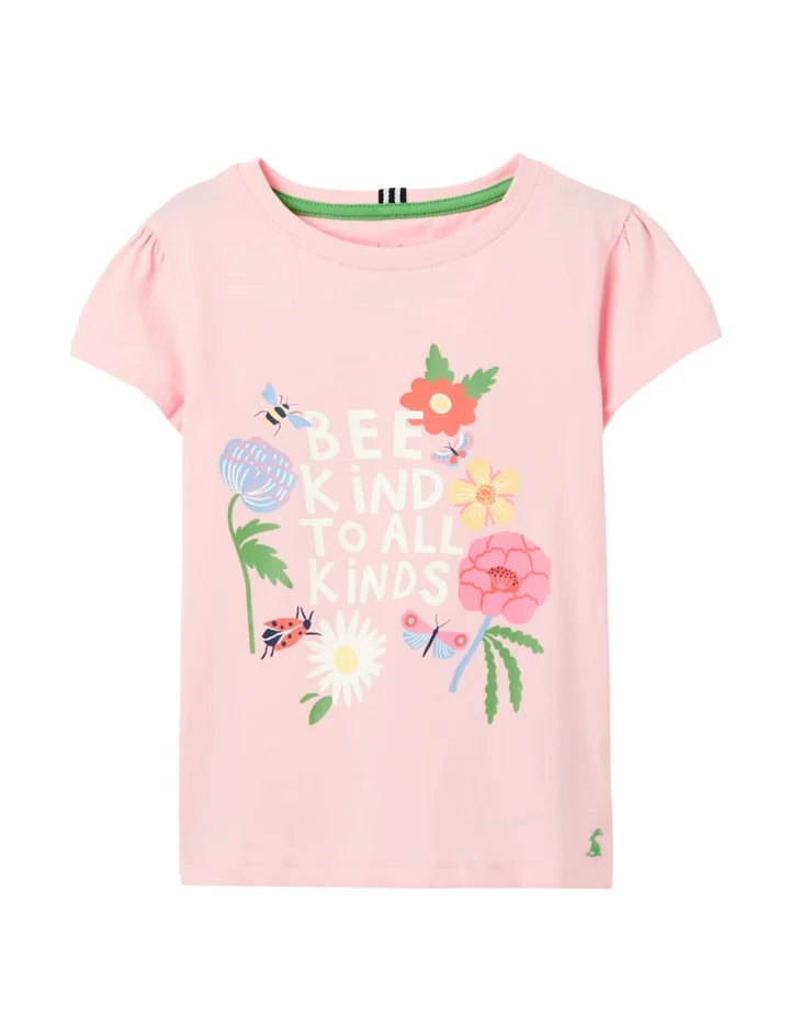 They can help spread an important message with this slogan t-shirt from Joules. It’s made in a regular fit. This casual style is crafted from breathable pure cotton and features ruched details on the short sleeves for extra detail. The screen-printed design consists of flowers, bees and butterflies, alongside the slogan ‘Bee kind to all kinds.’