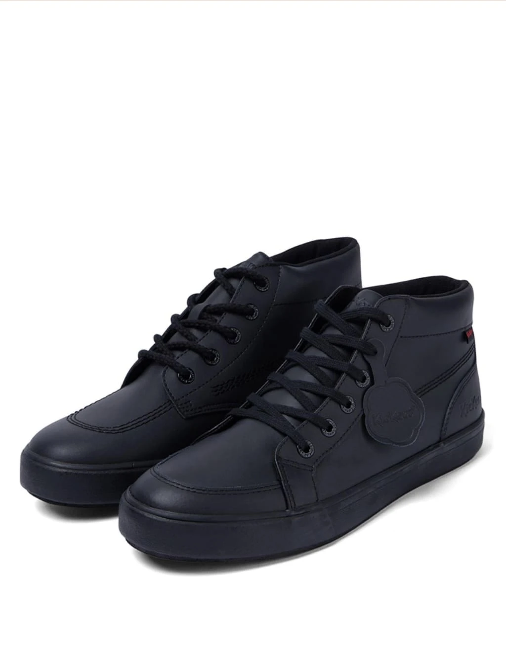 Refresh your everyday footwear collection with these leather high-top casual shoes from Kickers. They are crafted with durable soles and a padded collar for comfortable wear. The stylish matte upper features signature finishing touches, from tonal stitching and metallic eyelets to embossed branding and a removable leather tab.