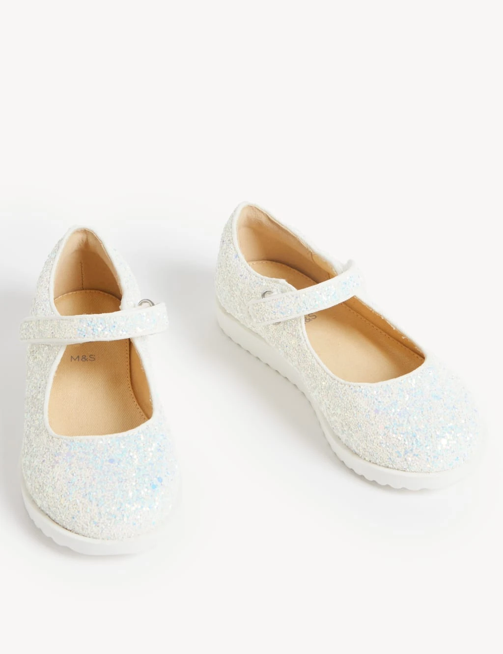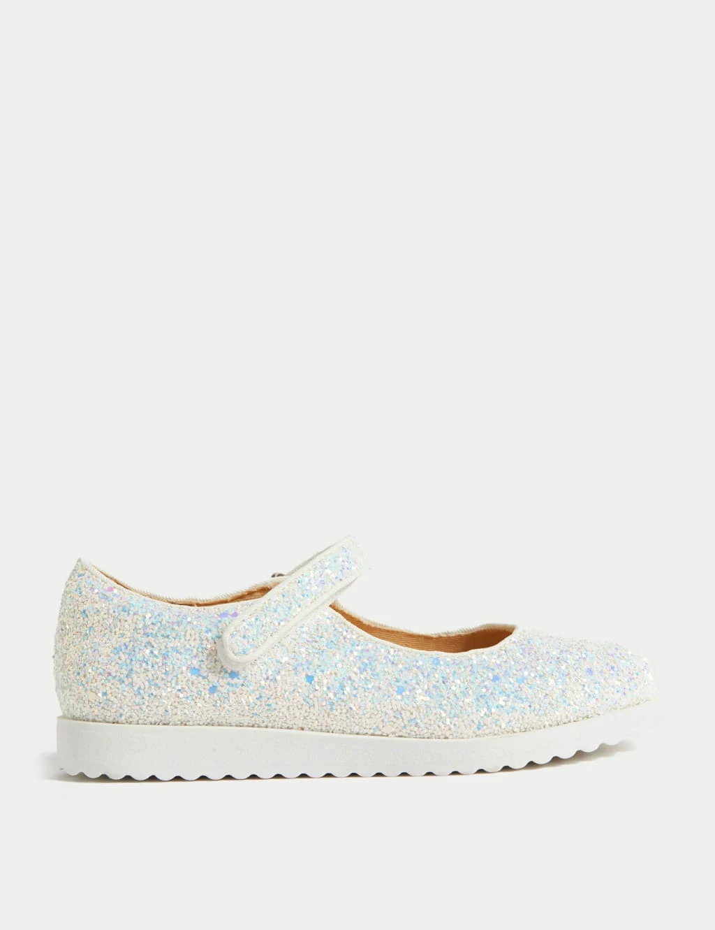 Add the perfect touch of sparkle to their next party look with these glittery Mary Jane shoes. Designed with a riptape fastening for easy on and off and a cleated sole.