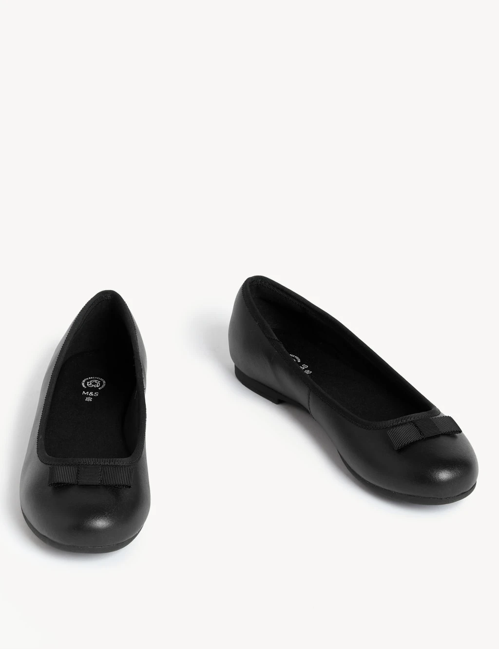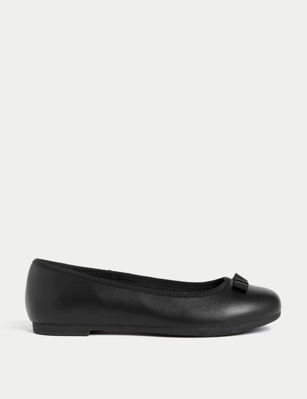 Kids’ Leather Ballerina Bow School Shoes (13 Smal L- 7 Large)