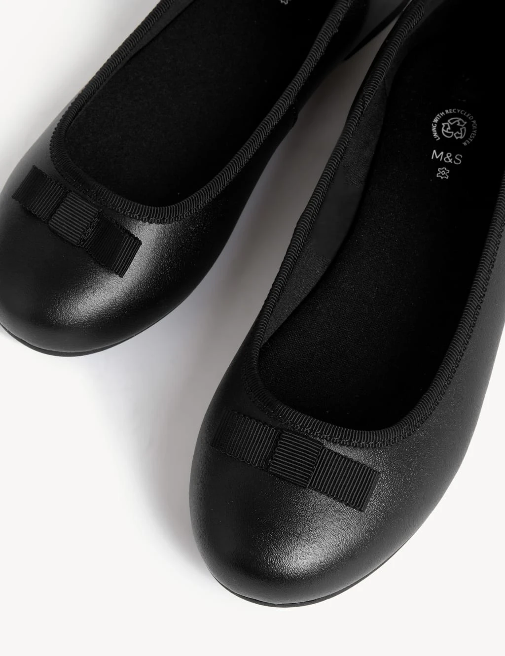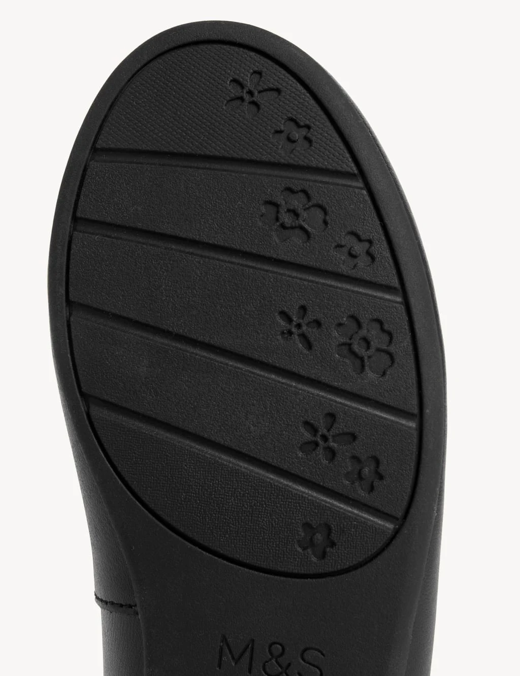 These smart leather school shoes are perfect for their busy day. Designed in a comfy ballet-style pump, with a pretty bow detail on the front. The scuff-resistant finish ensures they’ll stay looking smart all term long, while antibacterial Freshfeet™ technology keeps feet feeling fresh. Made with non-marking soles to help protect floor surfaces.