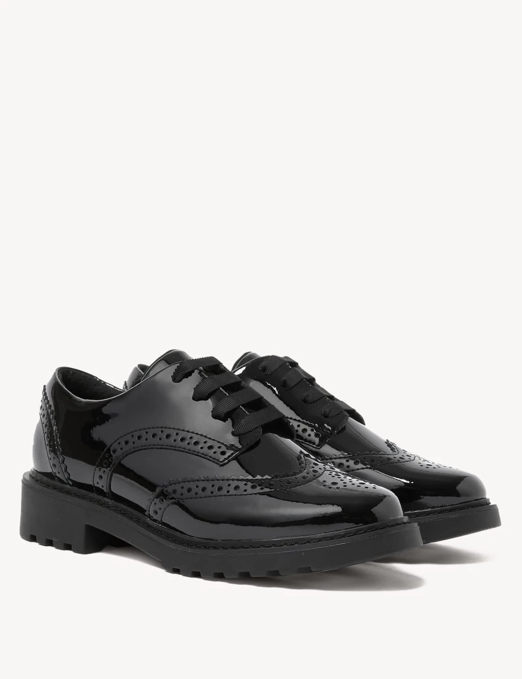 These smart brogues will complement any school uniform. Lace-up design with a sturdy heel and classic detailing, plus a shiny patent finish. Squidgy foam padding for ultimate, all-day comfort. Alongside a breathable lining, our Freshfeet™ technology combats odour-causing bacteria to keep feet fresh. These shoes are made to last, with scuff-resistant leather and non-marking outsoles.