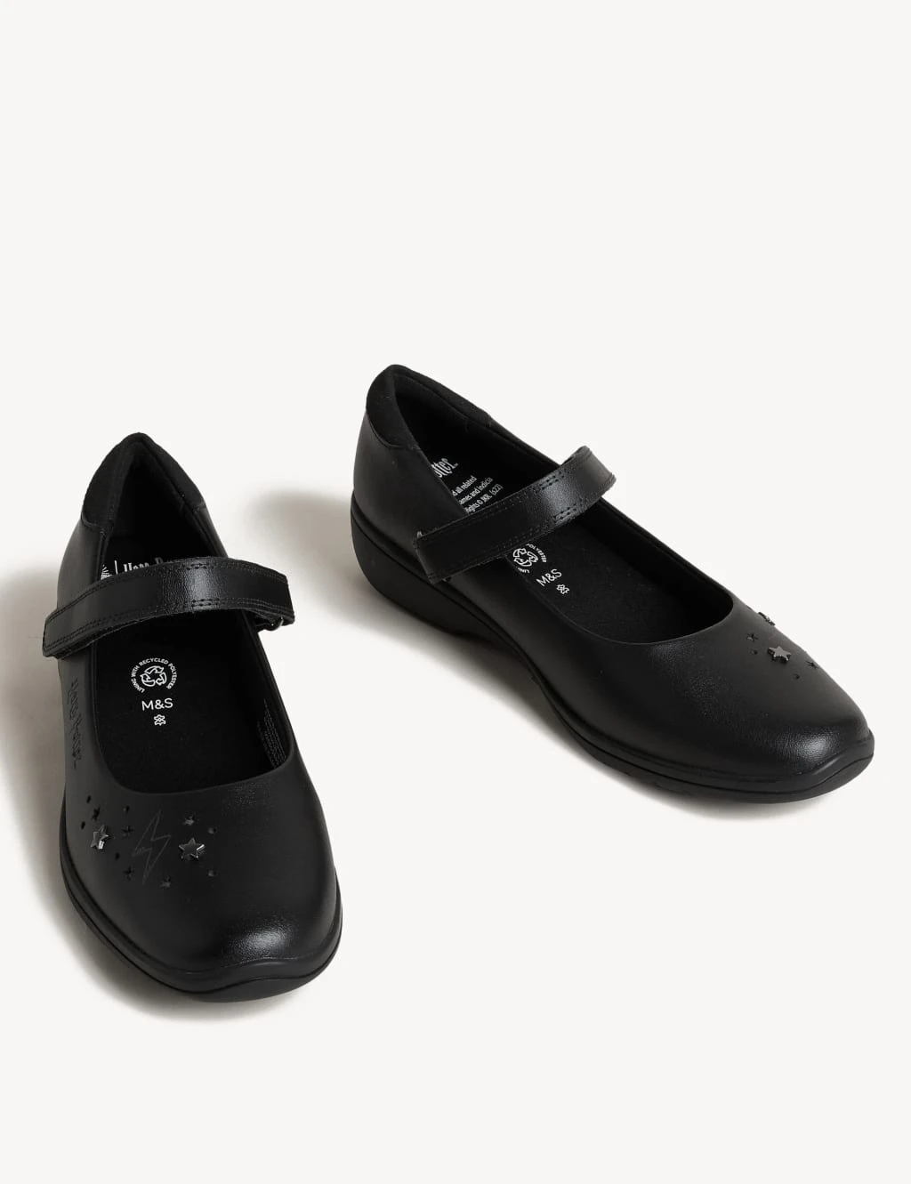 Harry Potter™ fans can take on the school day in style with these Mary Jane shoes. A riptape strap makes for easy on and off, while squidgy underfoot foam and a padded collar offer supreme comfort. These classic shoes are made from scuff-resistant leather with clever non-marking soles. Recycled linings with Freshfeet™ technology keep their footwear hygienic for longer. Made with responsibly sourced leather.
