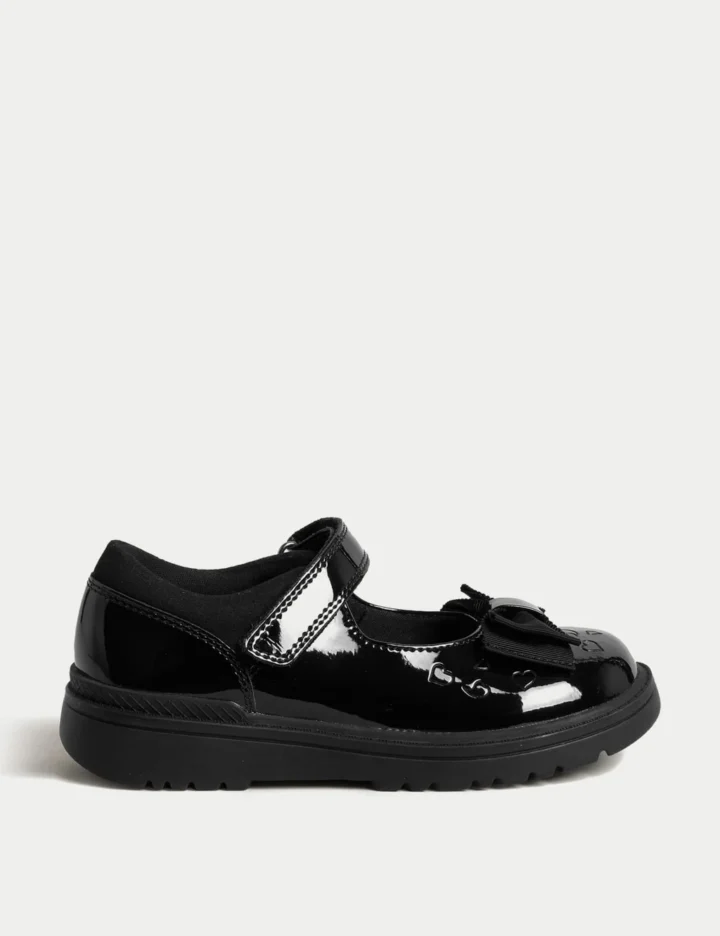 Add extra charm to their day with these patent leather Minnie Mouse™ school shoes. They fasten with a riptape strap for easy on and off and feature a padded collar and squidgy underfoot foam for supreme comfort. The non-marking soles and scuff-resistant finish add practical touches, while recycled linings with Freshfeet™ technology keep their footwear hygienic for longer. Made with responsibly sourced leather.