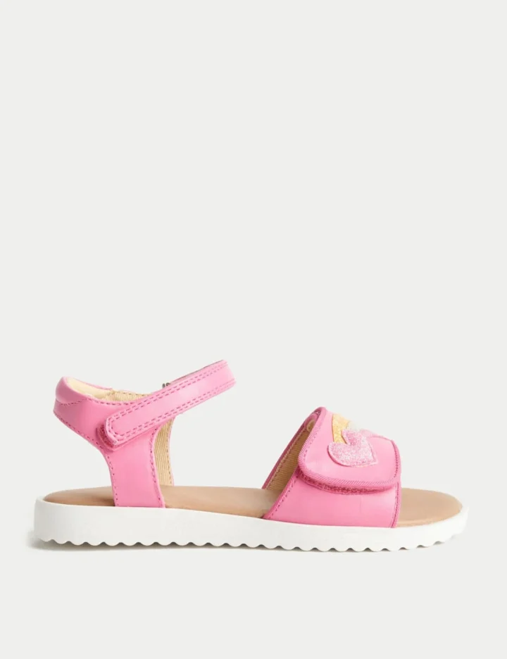Bring a playful feel to your youngster’s casual wardrobe with these summery sandals. Easy riptape fastenings allow quick dressing and provide a secure, comfy wear, and a rainbow motif across the toes adds fun detail. The soles are ridged to ensure a good grip.