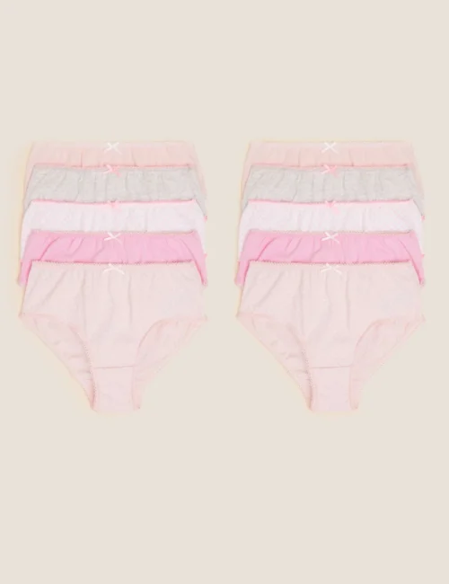 10pk Pure Cotton Spotty & Plain Knickers (2-14 Yrs)