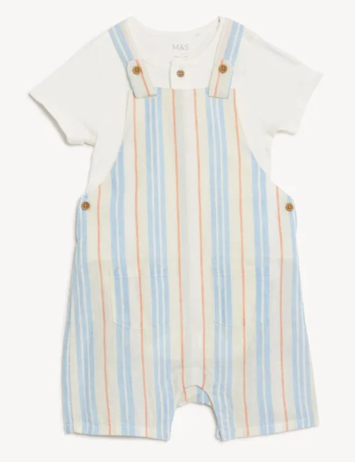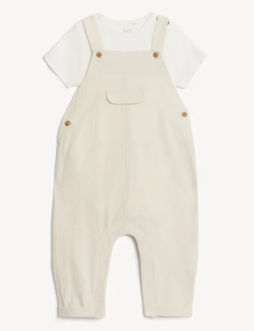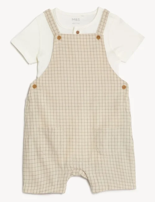 2pc Cotton Blend Dungarees Outfit (0-3 Yrs)