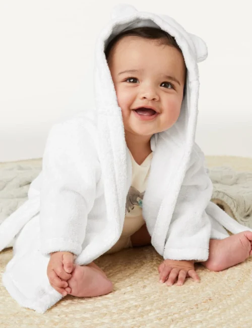 Pure Cotton Hooded Bathrobe (7lbs – 12 Mths)