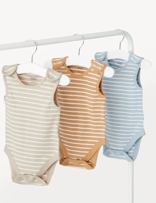 3pk Cotton Rich Striped Bodysuits (0-3 Yrs)