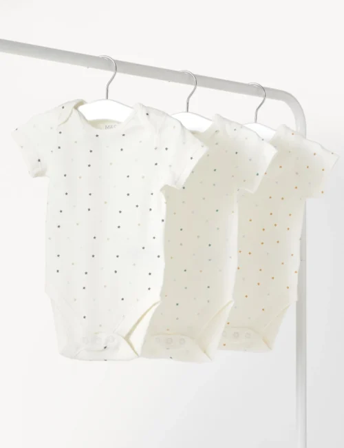 3pk Pure Cotton Star Bodysuits (6½lbs – 3 Yrs)