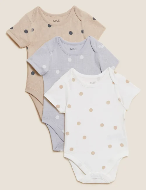 3pk Pure Cotton Spot Print Bodysuits (6½lbs-3 Yrs)