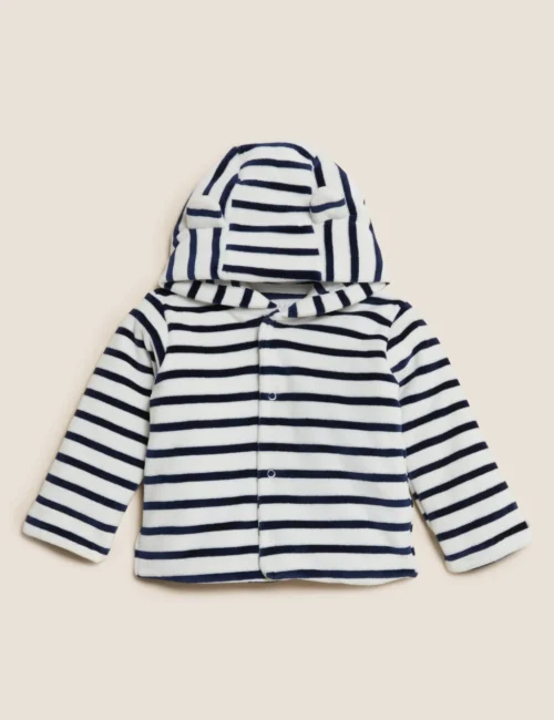Cotton Rich Velour Striped Hooded Jacket (0-3 Yrs)