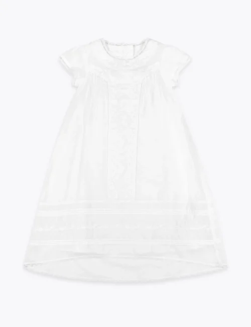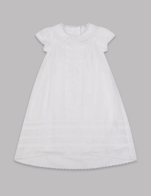 Pure Cotton Embroidered Christening Baby Dress (0-12 Mths)