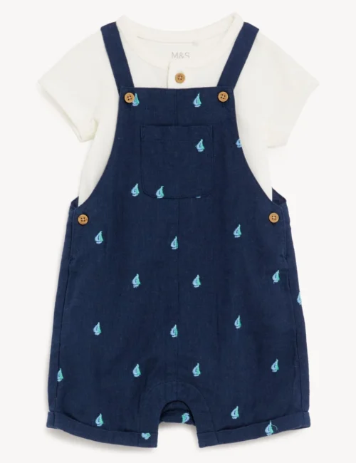 2pc Cotton Blend Dungarees Outfit (0-3 Yrs)