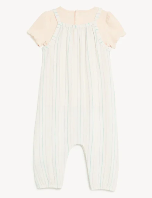 2pc Cotton Rich Striped Romper Outfit (0-3 Yrs)