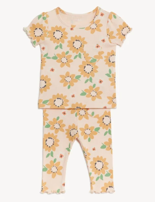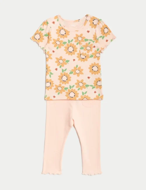 2pc Cotton Rich Sunflower Print Outfit (0-3 Yrs)