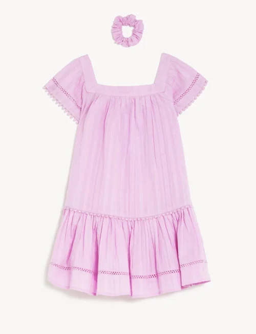 2pc Pure Cotton Dress And Scrunchie Outfit (2-8 Yrs)
