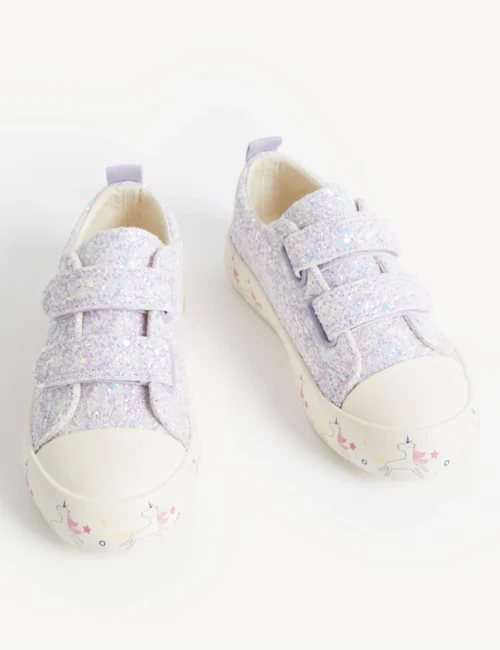 No Brand Kids’ Freshfeet™ Glitter Riptape Trainers (4 Small – 13 Small)