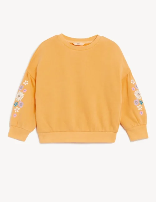 Cotton Rich Flower Embroidered Sweatshirt (2-8 Yrs)