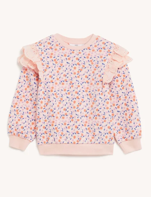 Cotton Rich Frill Floral Sweatshirt (2-8 Yrs)
