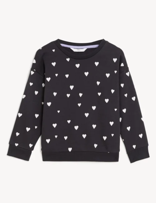 Cotton Rich Heart Print Sweatshirt (2-8 Yrs)