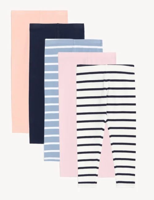 5pk Cotton Rich Striped Leggings (2 – 8 Yrs)