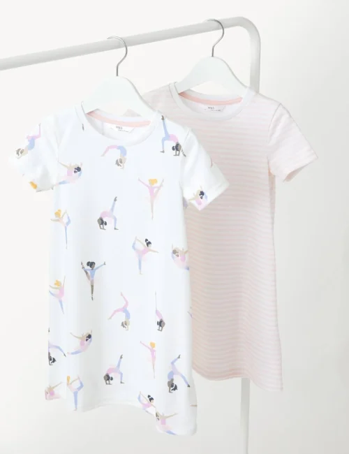 2pk Gymnast & Striped Nightdresses (1-8 Yrs)