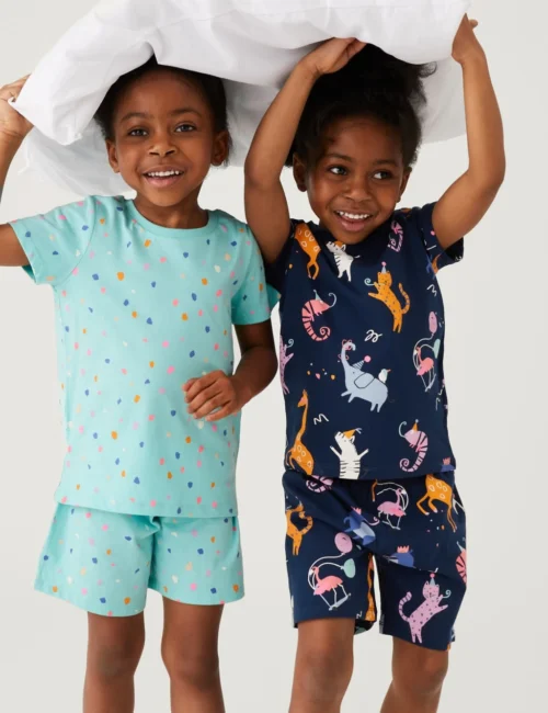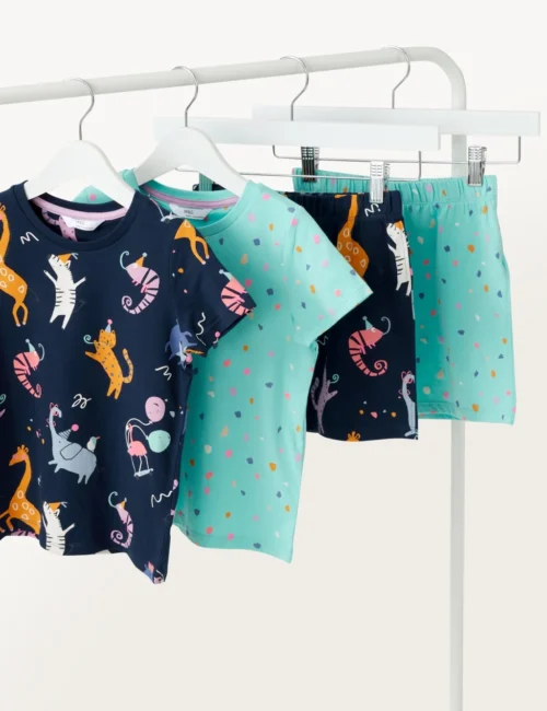 2pk Pure Cotton Printed Short Pyjama Sets (1 – 8 Yrs)