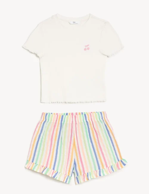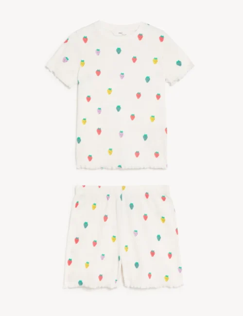 Cotton Rich Strawberry Rib Short Pyjama Set (1-8 Yrs)