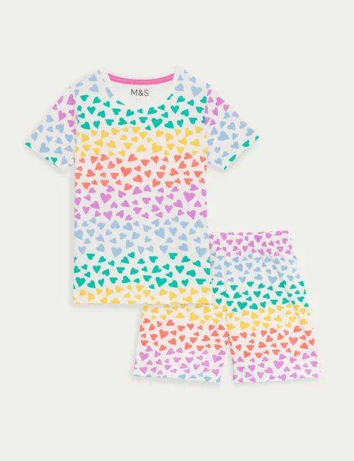 Cotton Rich Rainbow Heart Short Pyjama Set (1-8 Yrs)