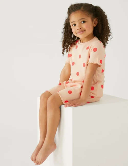 Cotton Rich Spotted Rib Short Pyjama Set (1-8 Yrs)