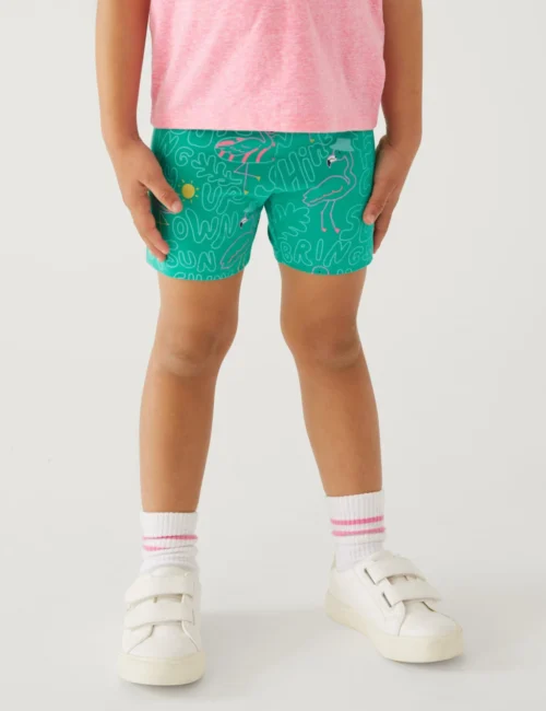 Cotton Rich Flamingo Print Cycling Shorts (2-8 Yrs)