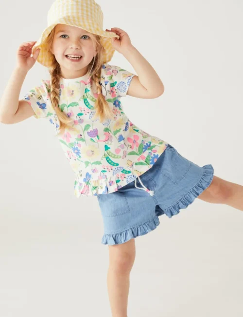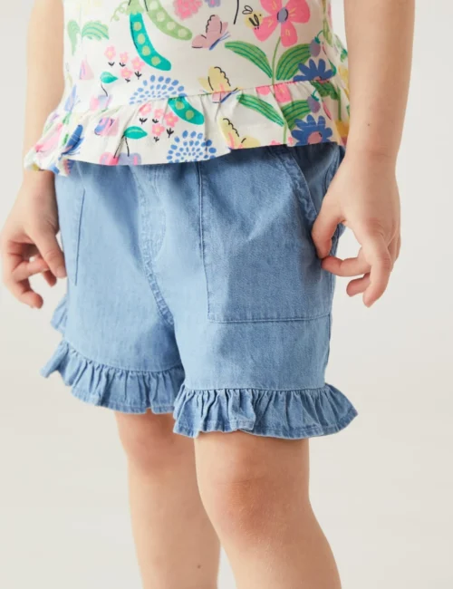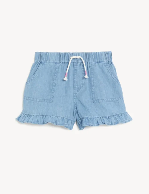 No Brand Pure Cotton Chambray Frill Shorts (2-8 Yrs)