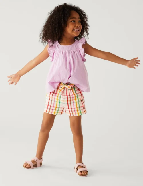 Pure Cotton Checked Shorts (2-8 Yrs)